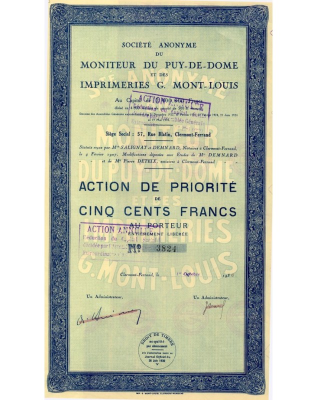 Sté du Moniteur du Puy-de-Dôme et des Imprimeries G. Mont-Louis