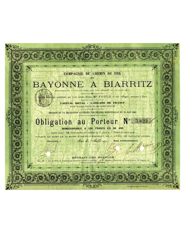 Refundabable Bond for 500F in 86 years - Paris 1890