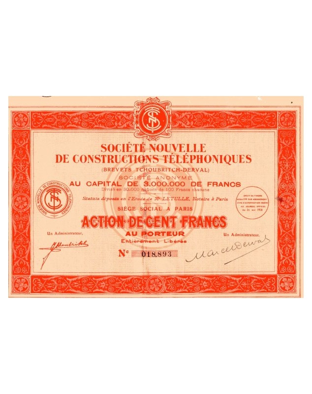 French limited company, incorporated in 1928, whose purpose was telephone constructions of all kinds, Tchoubritch-Derval patents.