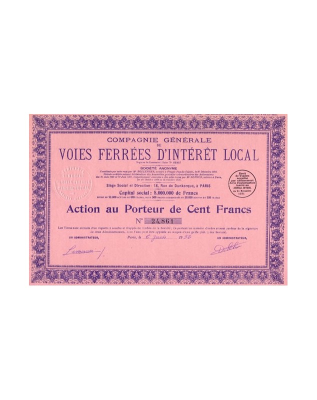 Share of 100F - Paris 1932