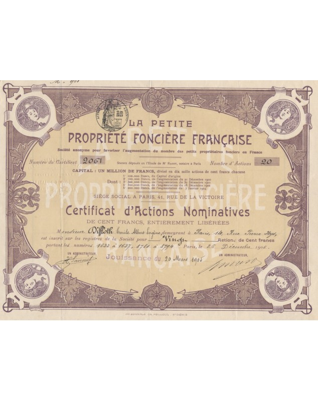 S.A. pour favoriser l'augmentation du nombre des petits propriétaires fonciers en France.
