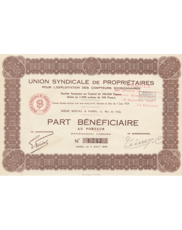 Beneficiary Share - Paris 1926