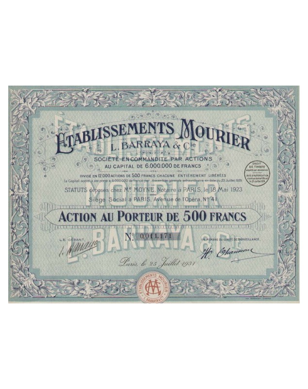 Etablissements Mourier L. Barraya & Cie (Café de Paris, Pré Catelan, Fouquet's, Pavillon d'Armenonville, Pavillon Royal)