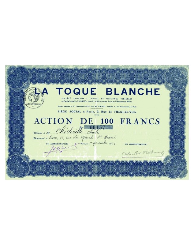 Share of 100F - Paris 1924