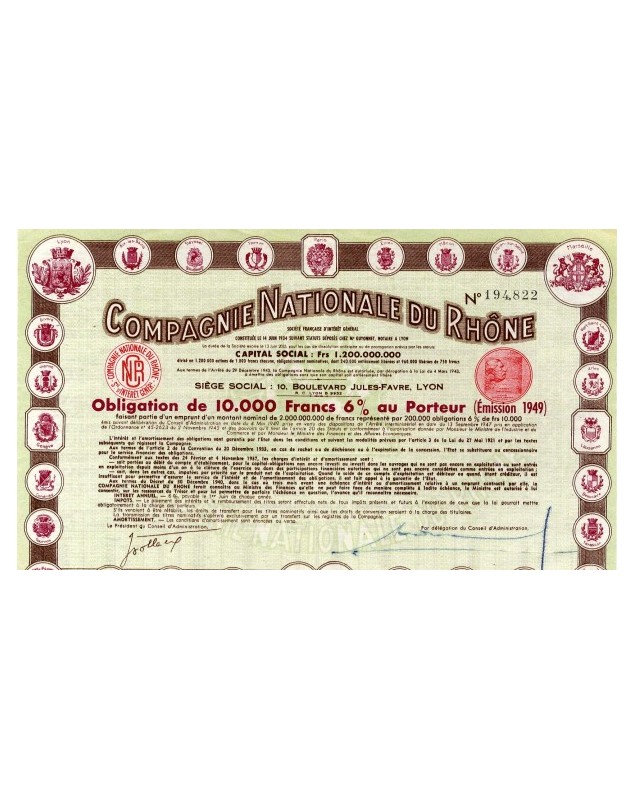 Bond 6% of 10.000F - Lyon 1949