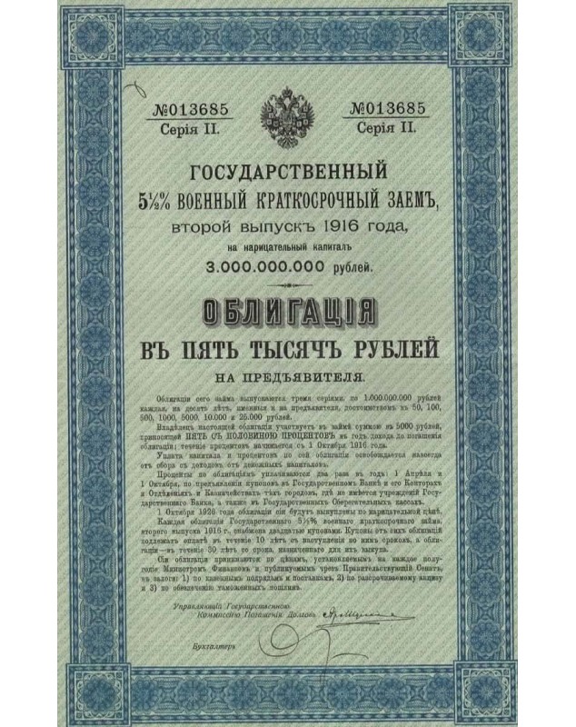 5.5% Russian short-term military war Second loan 1916 - Serie II (5,000 Rbl)