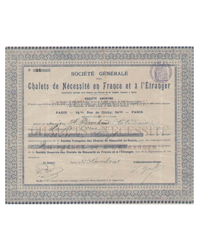 Sté Générale des Châlets de Nécessité en France et à l'Etranger