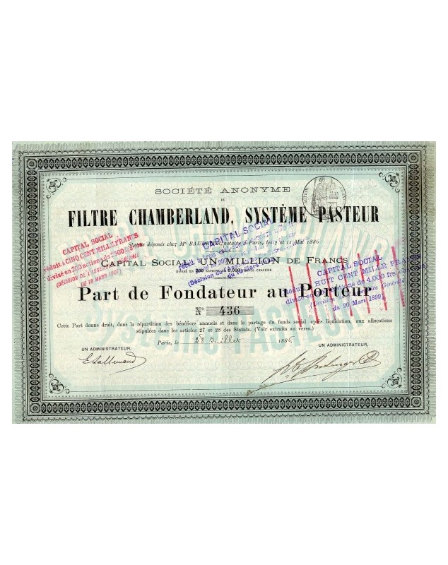 Founder's bearer share issued in Paris in 1886.