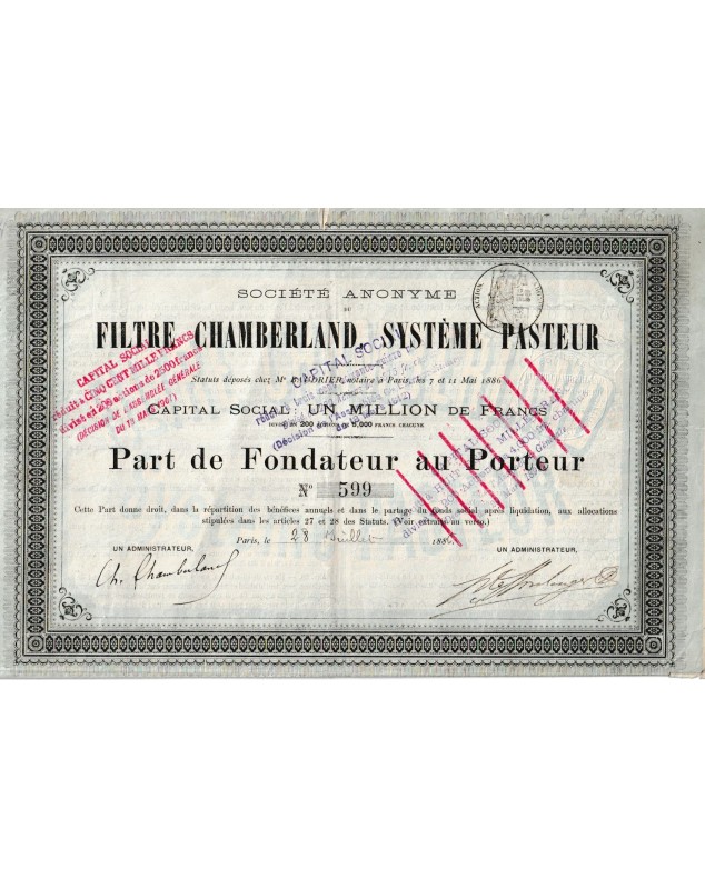 Founder's bearer share issued in Paris in 1886.