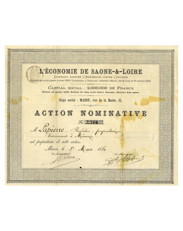Share of 500F - Mâcon 1880