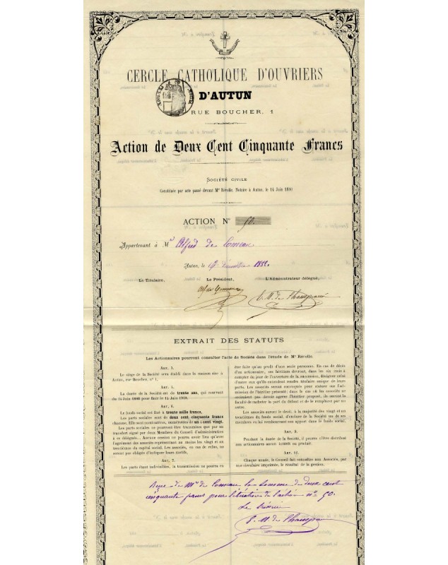 Share of 250F - Autun 1882