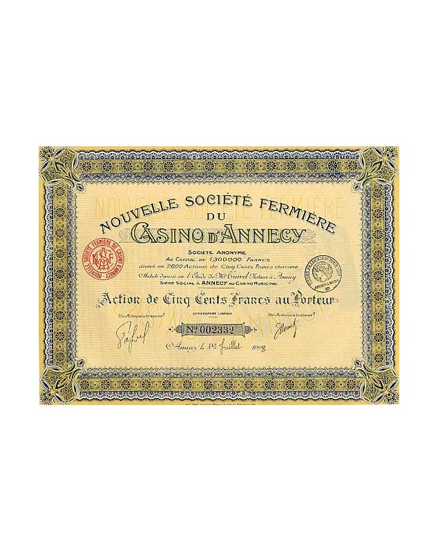Share of 500F - Annecy (Haute-Savoie) 1923