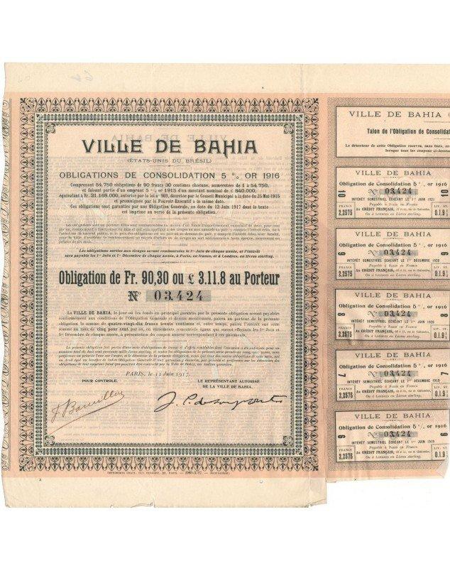 Ville de Bahia - 5% Consolidation Gold Loan 1916