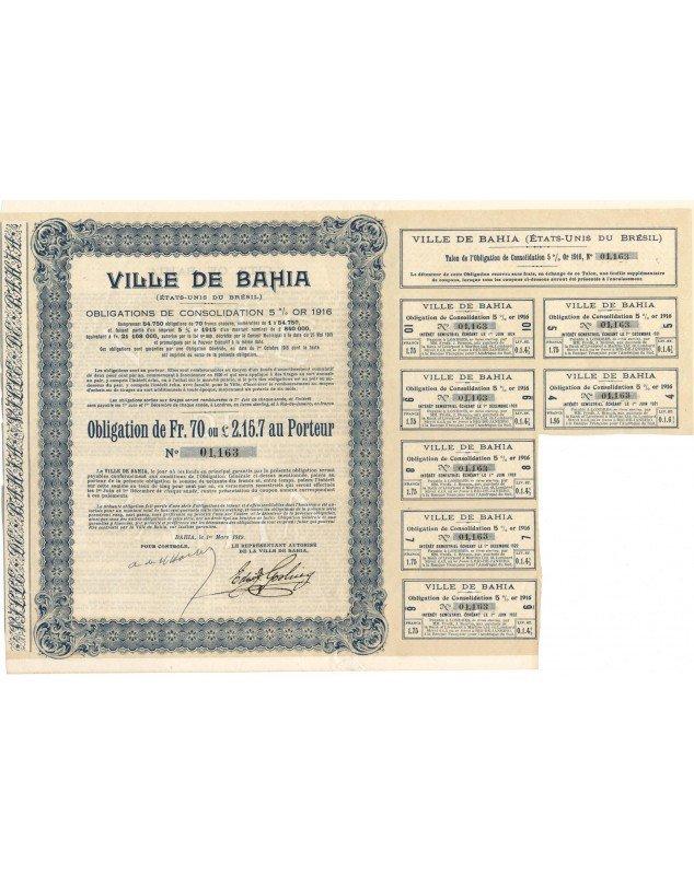 Ville de Bahia - 5% Consolidation Gold Loan 1916