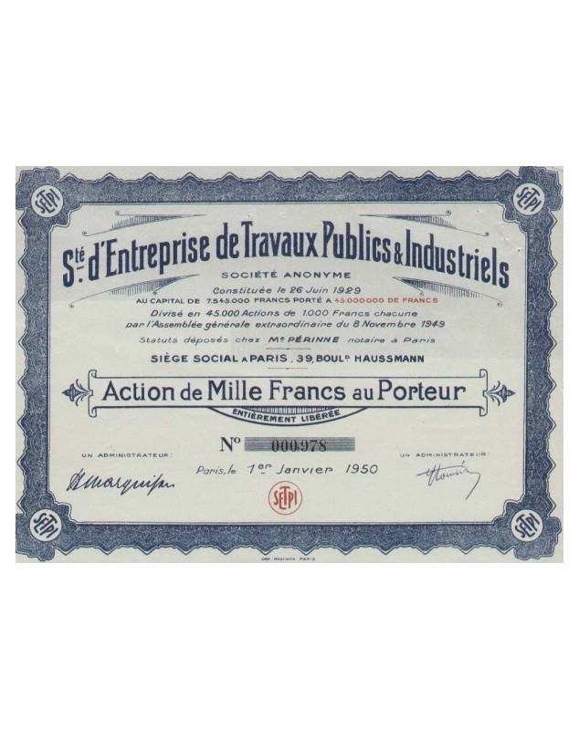 Share of 1000 Francs - Paris 1950