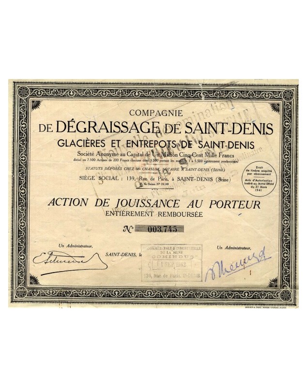 Cie de Dégraissage de Saint-Denis Glacières et Entrepôts de Saint-Denis
