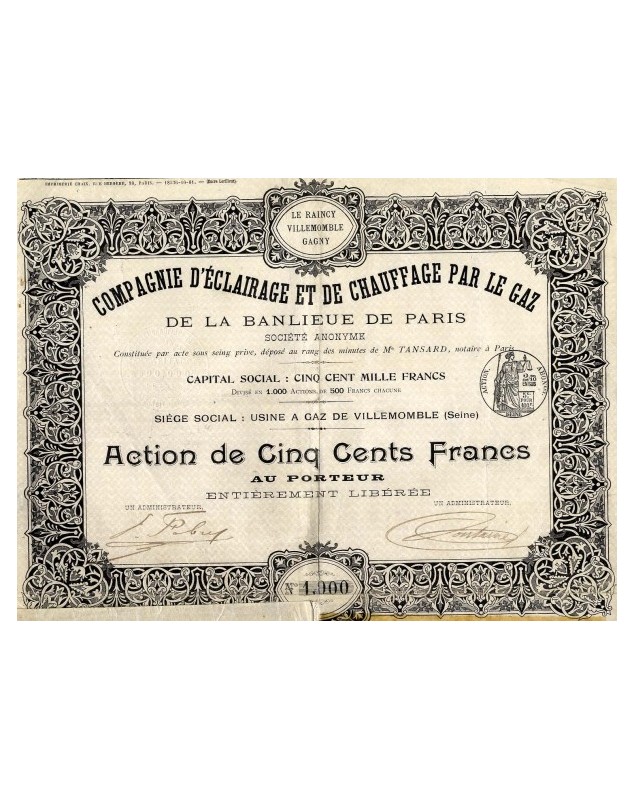 Cie d'Eclairage et de Chauffage par le Gaz de la Banlieue de Paris Le Raincy, Villemomble, Gagny