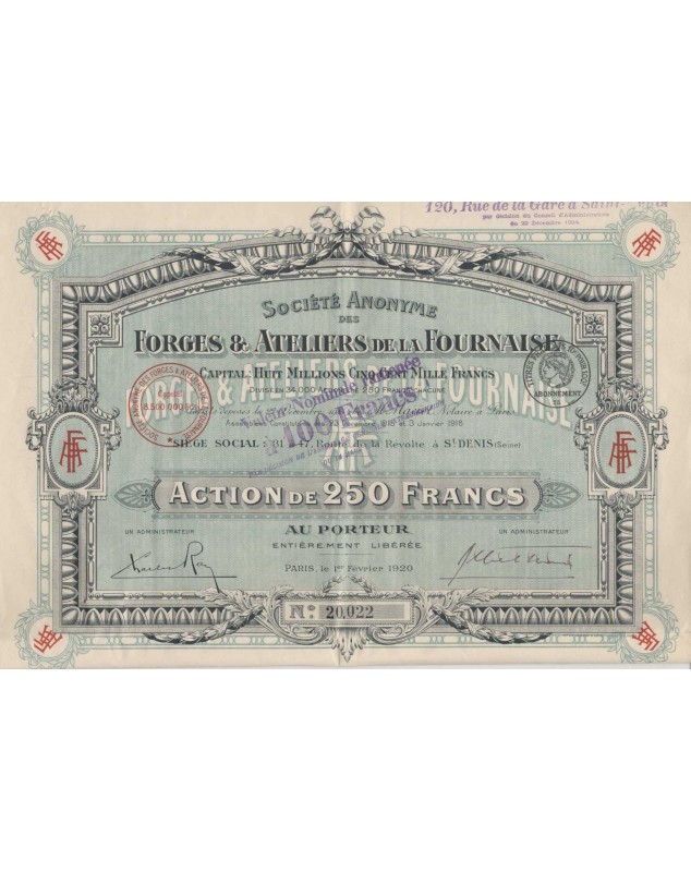 Head office: 31-47 Route de la Révolte, Saint-Denis, then transferred in 1924 120 rue de la Gare.