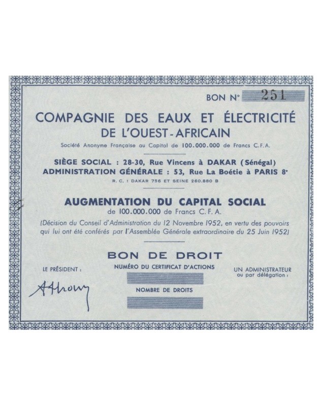 Electricity and Water Company of West Africa. Size : 15x13 cm