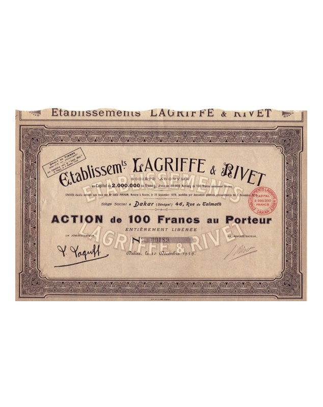 Share of 100F - Dakar 1929