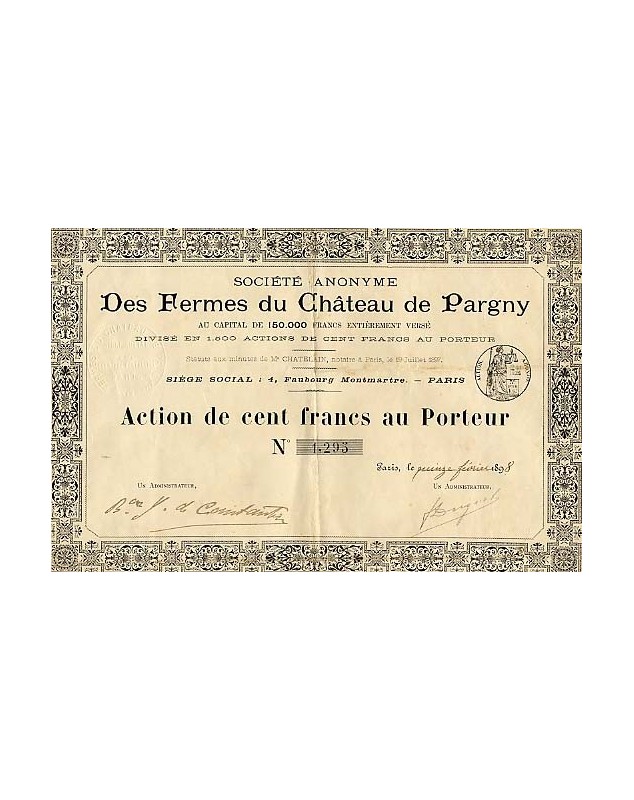 Small issue of 1500 shares. Castle located in Bois-lès-Pargny (Aisne).