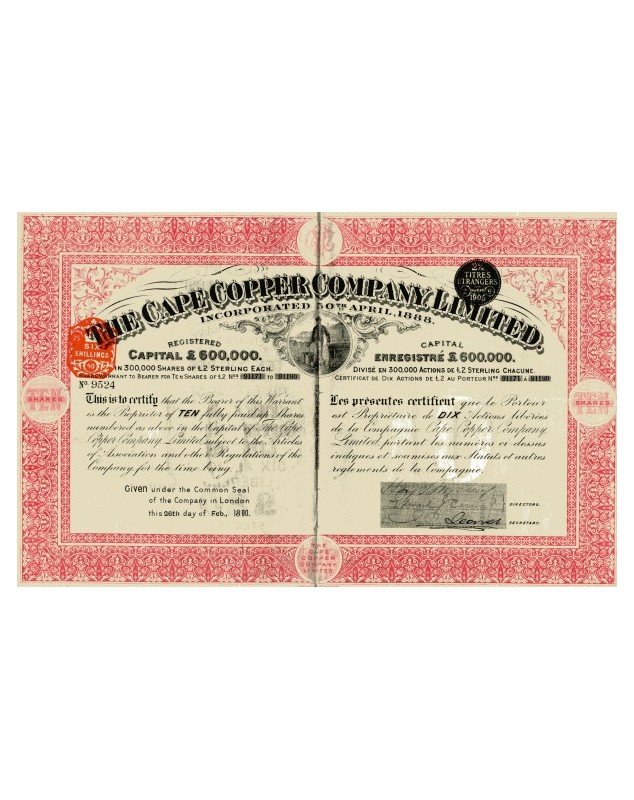 Cert. of 10 Shares of 2£ ea.- London 1888