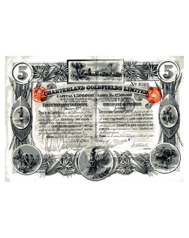 Cert. of 5 shares of 1£ or 25F - Londres 1895