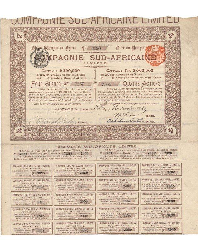 Certificate of 4 shares of 1£ - London 1889