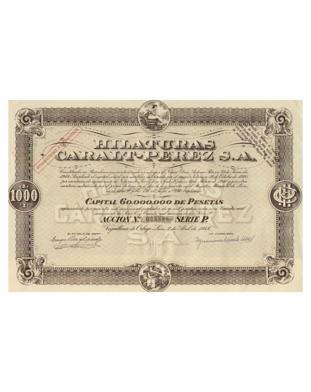 Certificate of 1000 Shares (Serie P) - Léon 1948