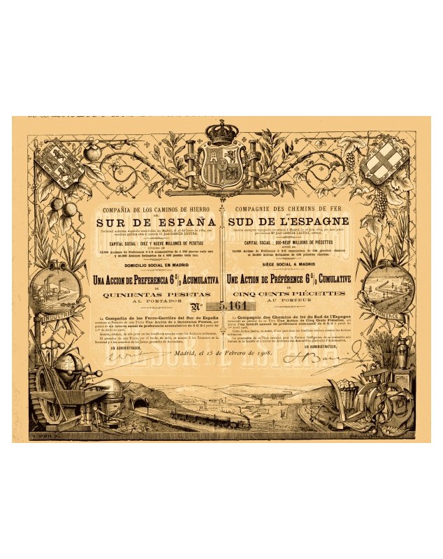 Accion de Preferencia 6% Acumulativa de 500 Ps - Madrid 1908