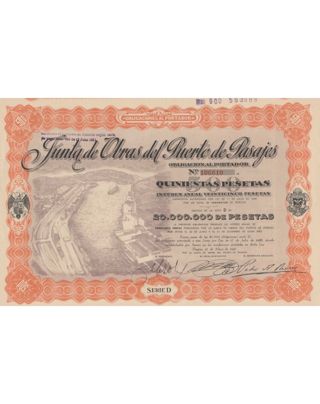 Bond of 500 Pesetas Serie D - Passajes 1951