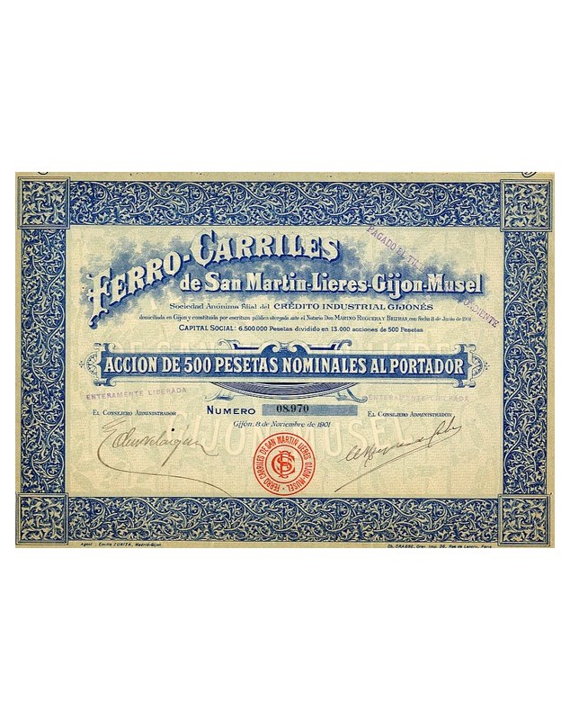 Accion de 500 Pesetas - Gijon 1901