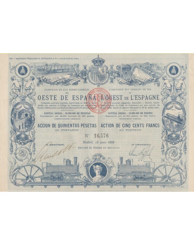 Cia de los Ferro-Carriles des Oeste de España. 1888