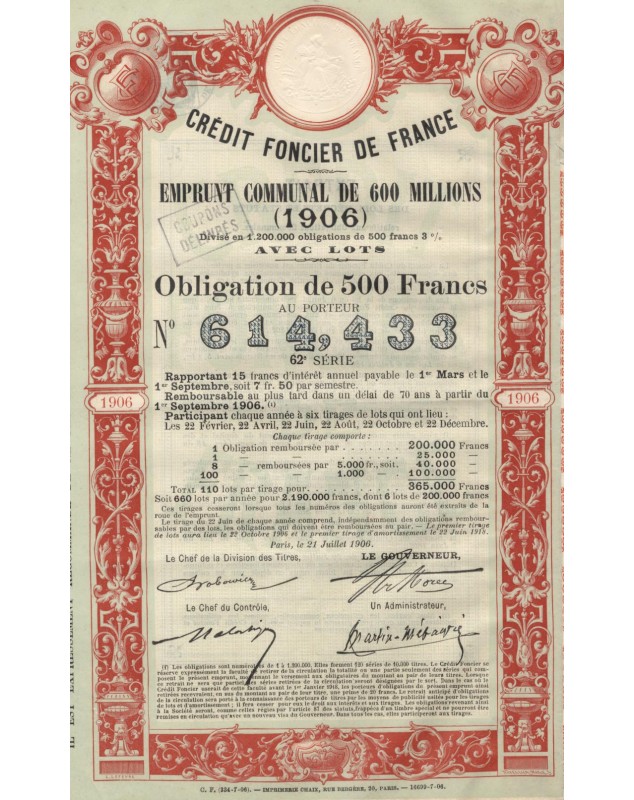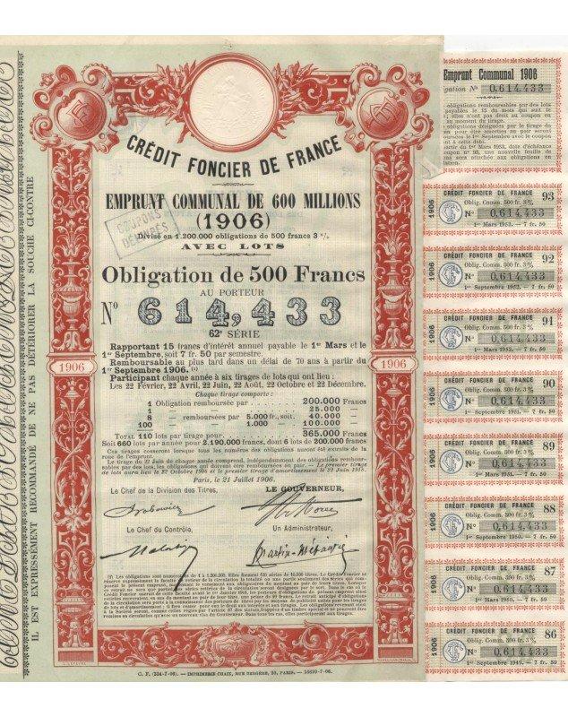 Crédit Foncier de France - 600,000F Municipal Loan 1906