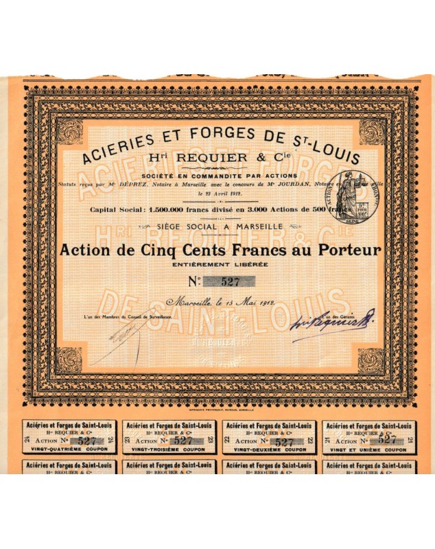 Share of 500 francs to bearer issued in Marseilles in 1912.