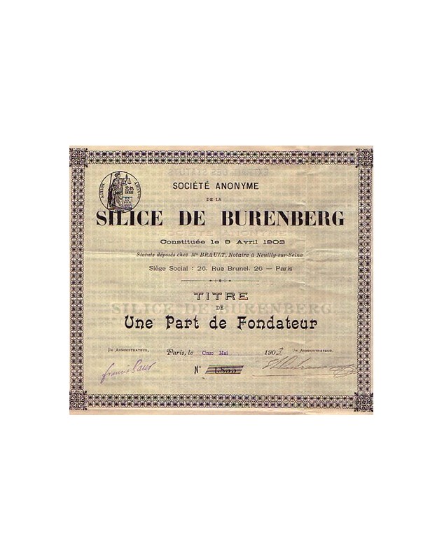 Founded in 1903, the head office was located 26 rue Brunel, Paris.