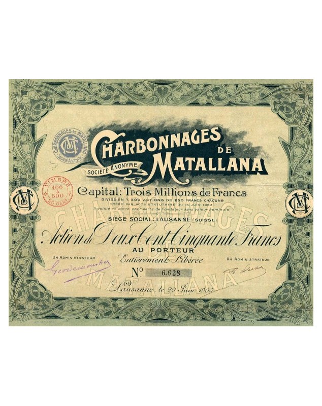 Share of 250F - Lausanne 1903 - Issue 7,500