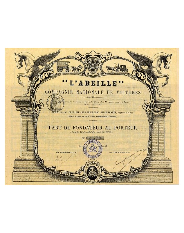 The share is richly illustrated with horses with wings and horse-drawn carriages.