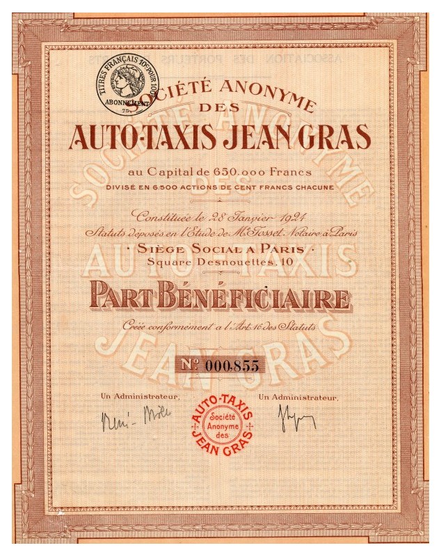 Sté Anonyme des Auto-Taxis Jean Gras