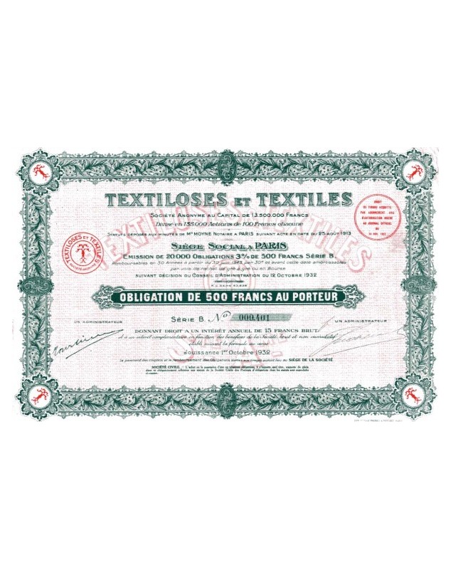 One of the administrators of this company was Clément-Bayard, French industrialist, manufacturer of cycles, automobiles and aeronautical equipment from 1878 to 1922. He was the first to import Dunlop tires then launched into the automobile and dirigible balloons. Bayard was administrator of another textile company (fur store): A la Reine d'Angleterre.