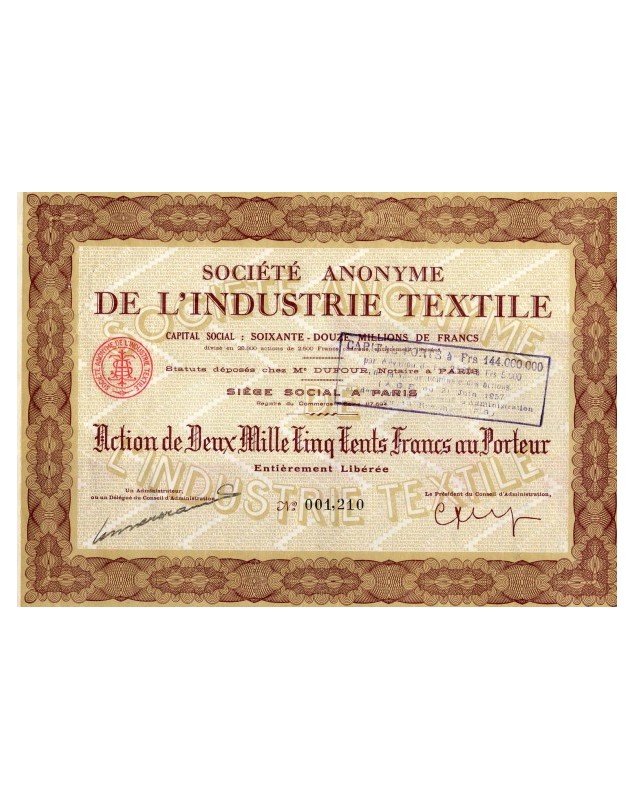 Share of 2,500F - Paris 1957