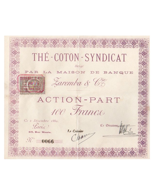 Thé - Coton - Syndicat par la Maison de Banque Zaremba