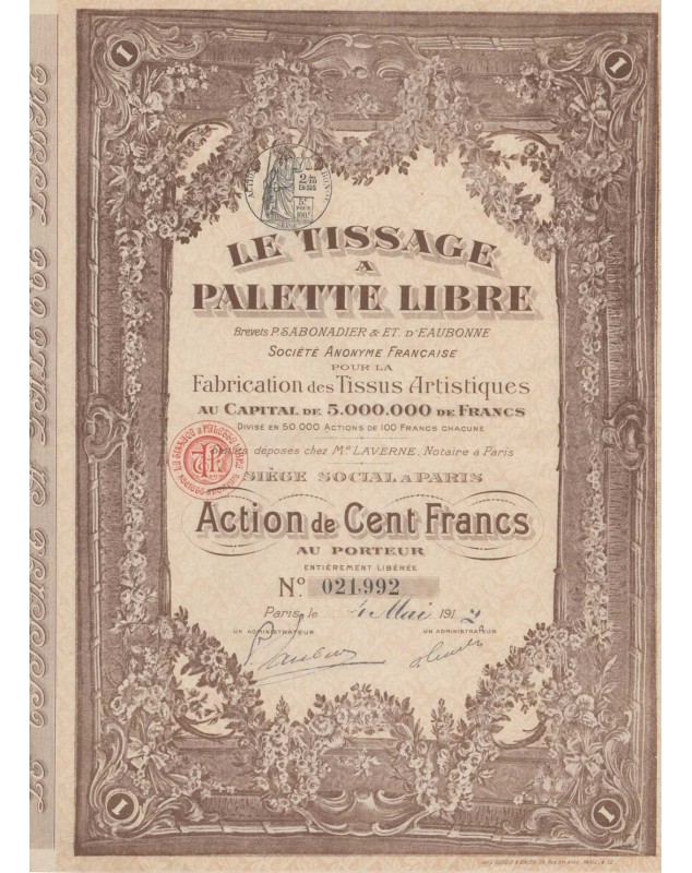 Le Tissage à Palette Libre, Brevets P. Sabonadier & Et. d'Eaubonne. S.A. Française pour la Fabrication de Tissus Artistiques