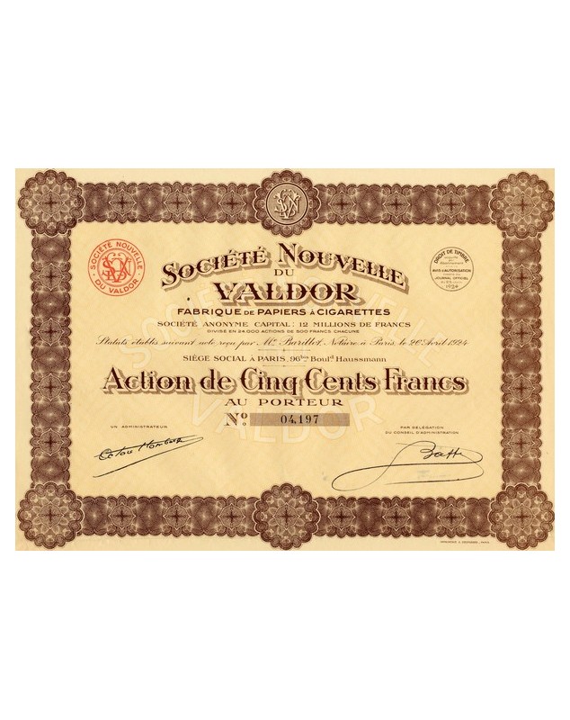 Sté Nouvelle du Valdor. Fabrique de Papiers à Cigarettes