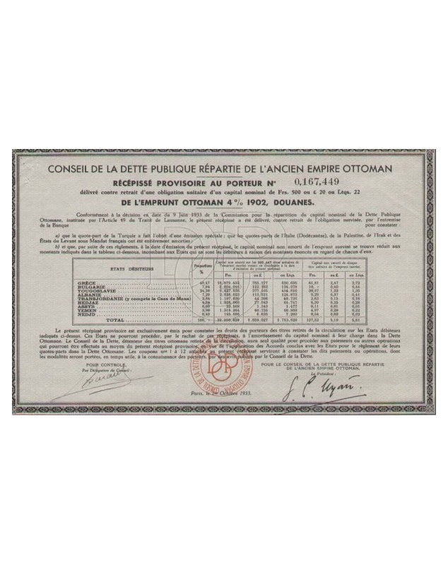 Conseil de la Dette Publique Répartie de l'Ancien Empire Ottoman - Ottoman Loan 4% 1902, Douanes (Customs)