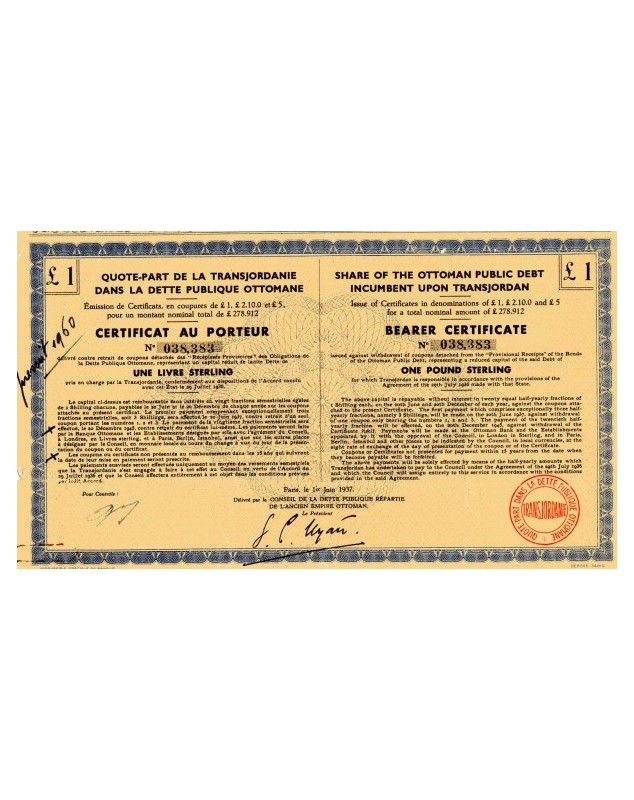 Share of the Ottoman Public Debt Incumbent upon Transjordan