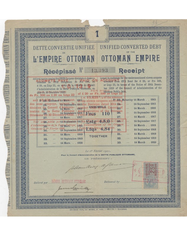Unified Converted Debt of the Ottoman Empire. 1921