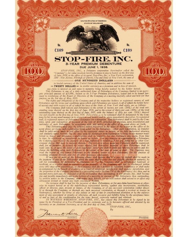 3-Year Debenture - $100 - Delaware 1935