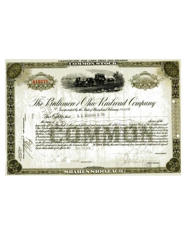 Cert. of 10 shares of 100$ ea. Maryland 1927