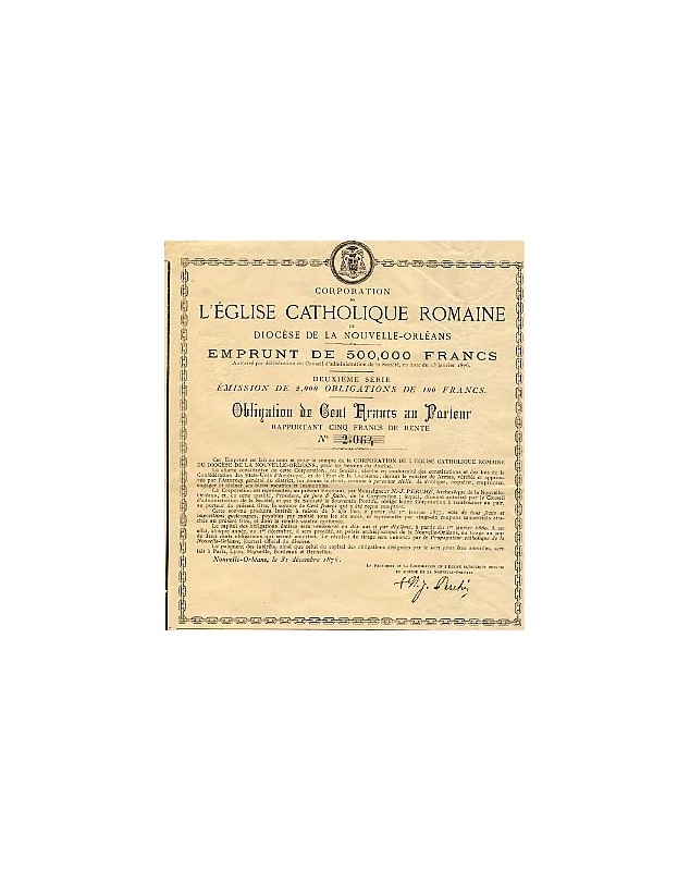 Signed by New-Orleans Archbishop N.-J. Perché and President of the Corporation.